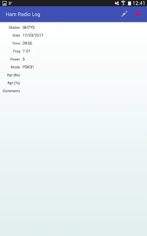 This simple ham radio logbook allows you to quickly and easily log contacts. Date and time are automatically entered, as well as the last used frequency, power, and mode for quick contest entry. Search through your logbook for a particular station, export in ADIF format, or share your logs between Android devices with the database import/export feature. Log entry on the go has never been easier!