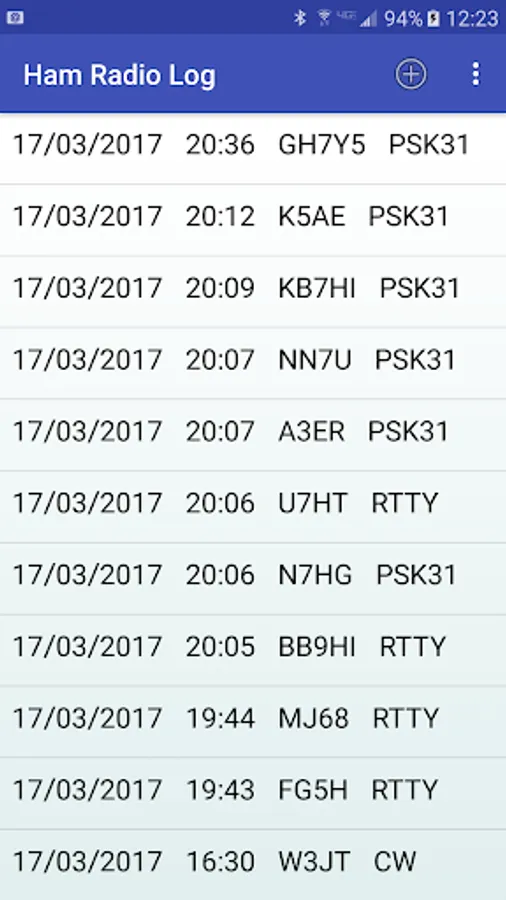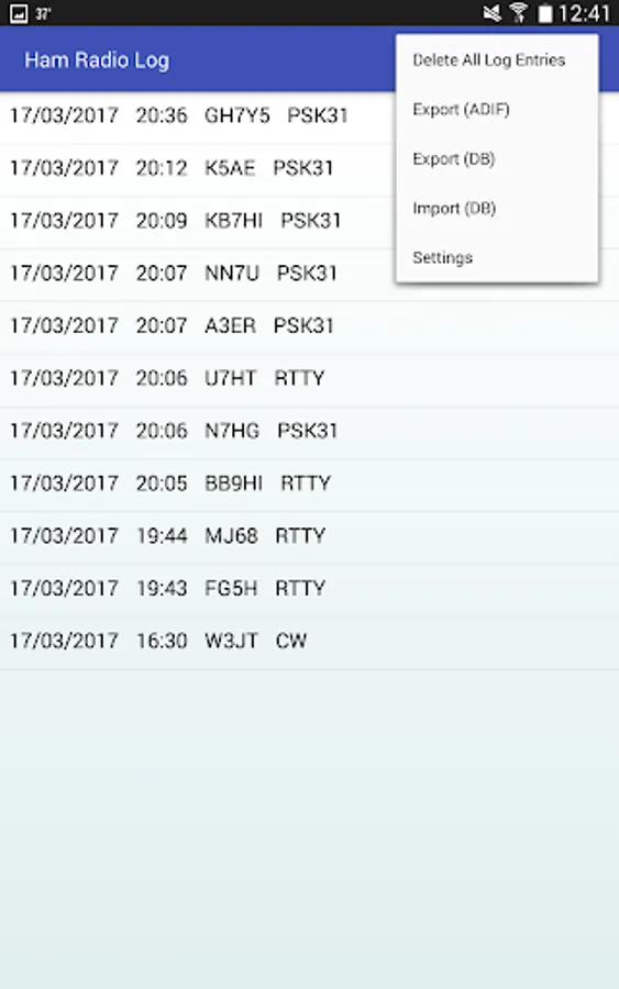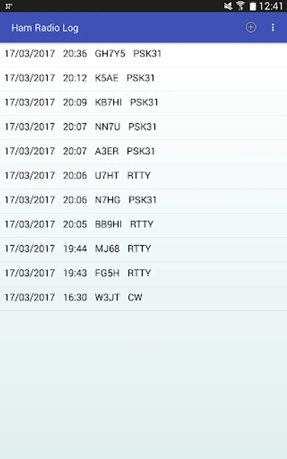This simple ham radio logbook allows you to quickly and easily log contacts. Date and time are automatically entered, as well as the last used frequency, power, and mode for quick contest entry. Search through your logbook for a particular station, export in ADIF format, or share your logs between Android devices with the database import/export feature. Log entry on the go has never been easier!
