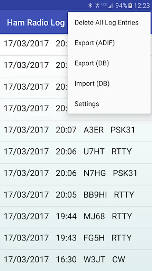 Ham Radio Log Screenshots