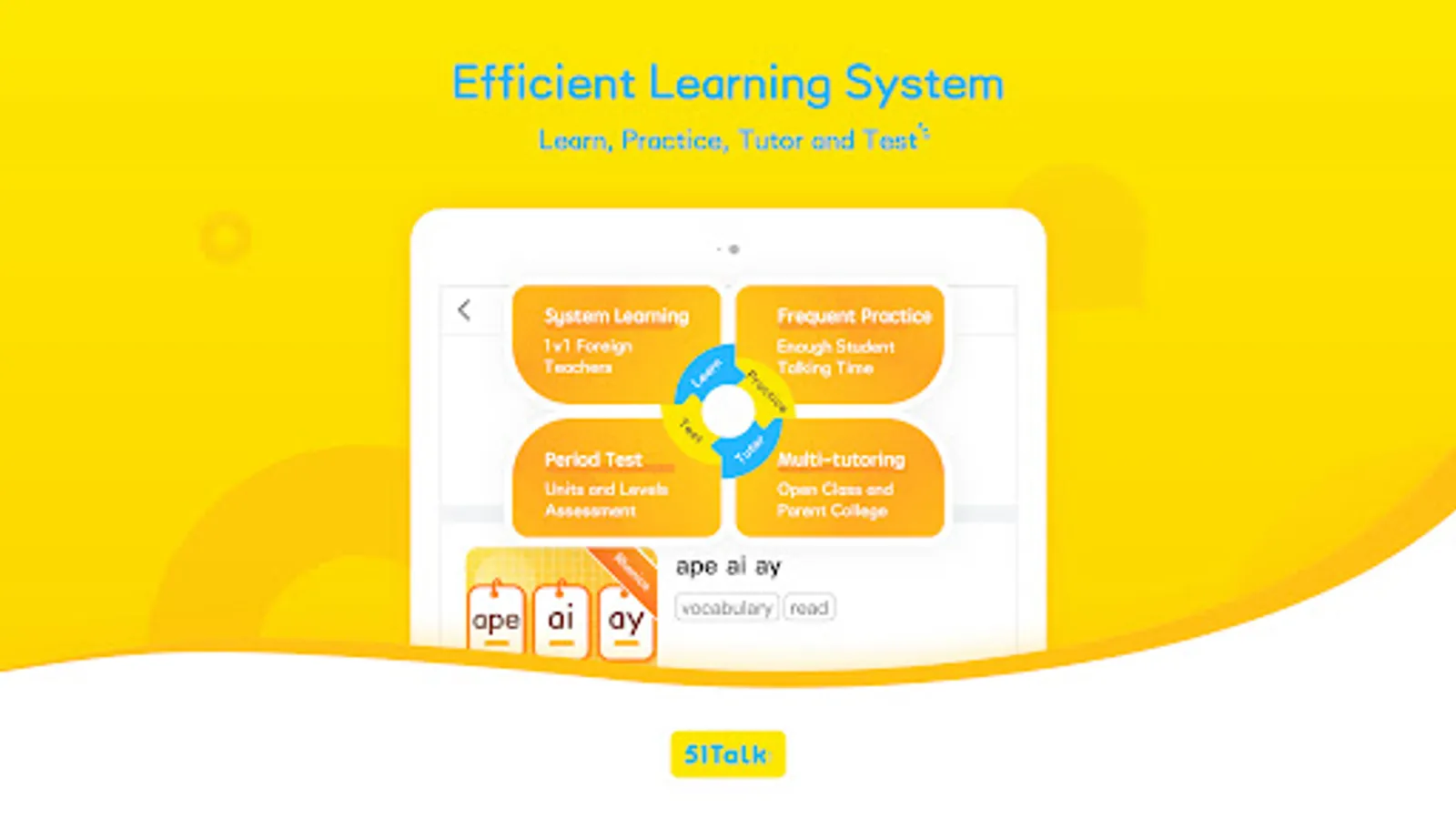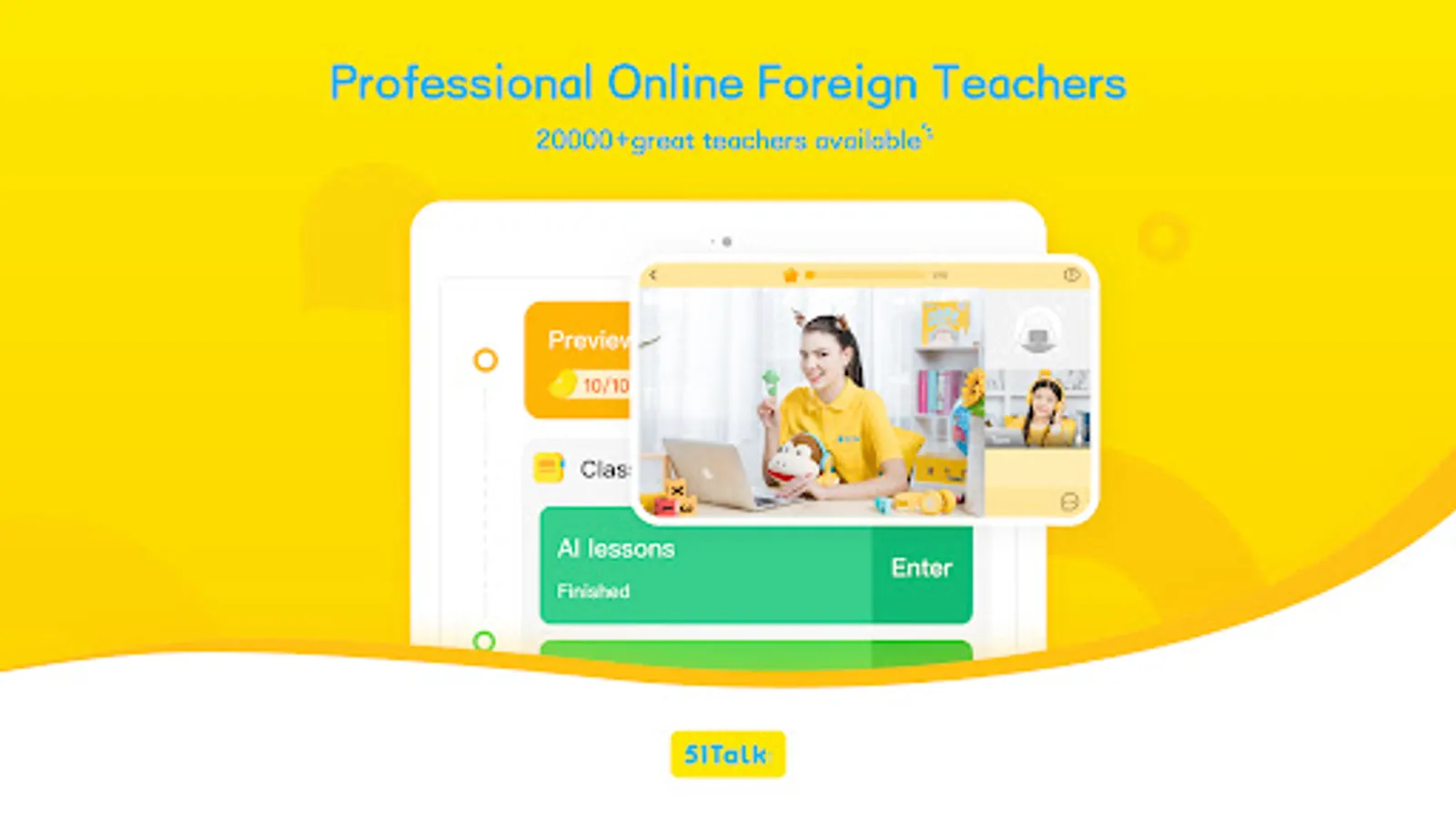[Anytime, Anywhere] Open 51Talk app and schedule your lesson with only two steps. Over 20,000 tutors and 36 time slots per day for you to choose! Take lessons with your phone, tablet or computer and learn wherever and whenever you like.