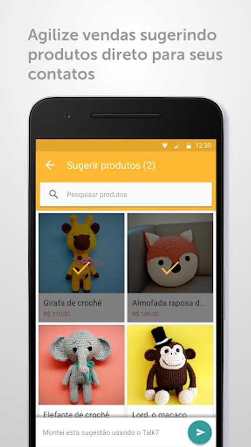 Technology already used by 8 million users Elo7. We not only believe that this is the future as we have moved all Elo7 to sell via messages. At the moment only available for Elo7 vendors, this innovation soon also will be at your fingertips, please request early access to Talk7 in http://www.talk7.com/