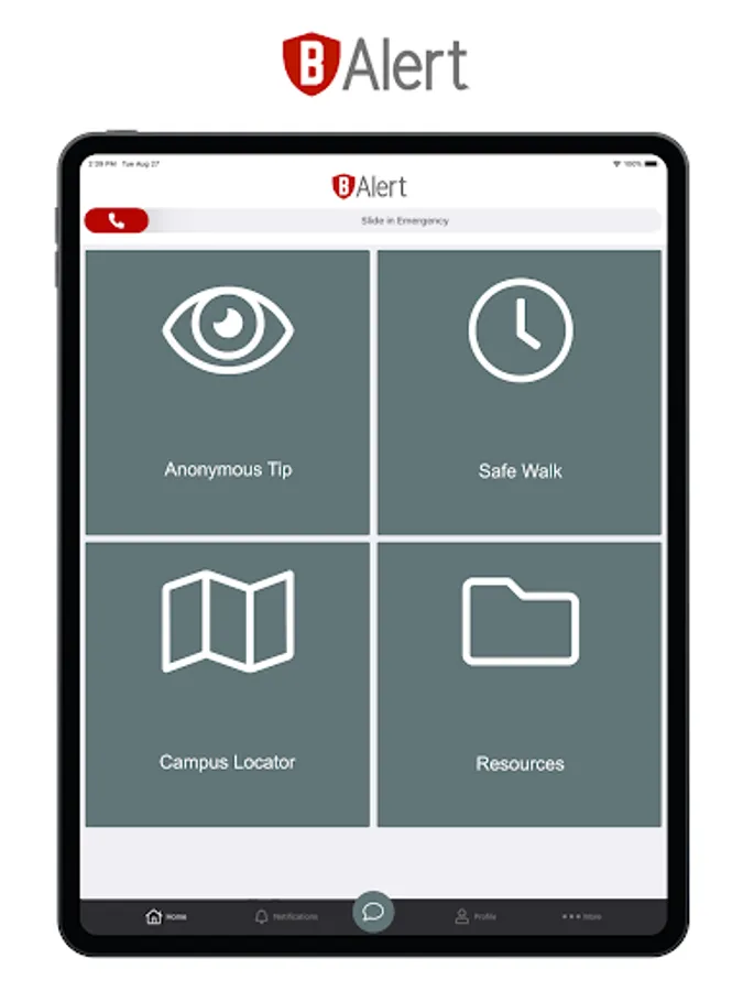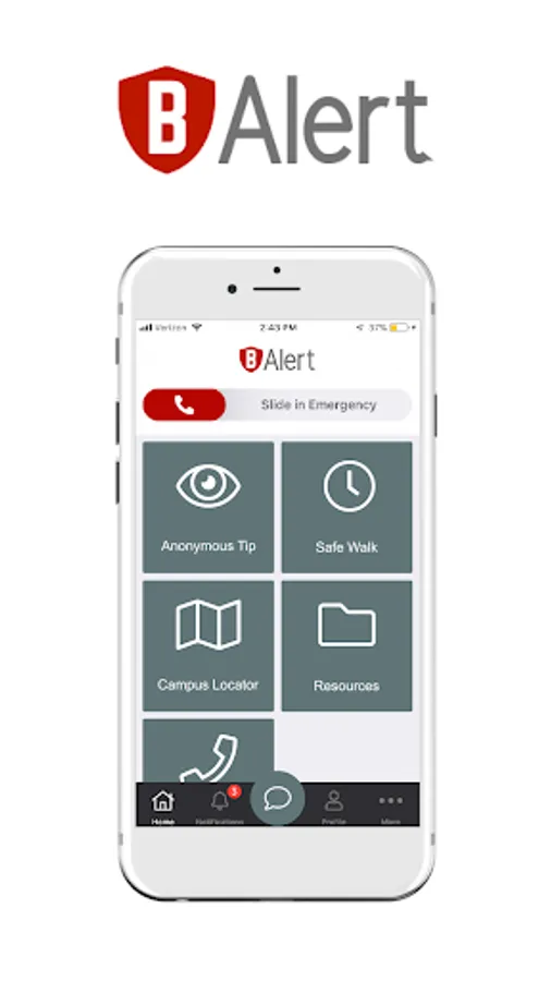The bAlert Mobile Safety App is a versatile and customizable personal safety communication tool. The app features an emergency slider to easily place a call to first responders. This personal safety tool uses geofences to determine whether or not the user is currently within jurisdiction of their local emergency services.