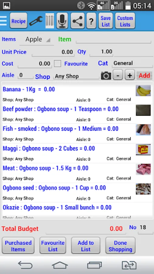 Know the total budgeted cost for your shopping list.