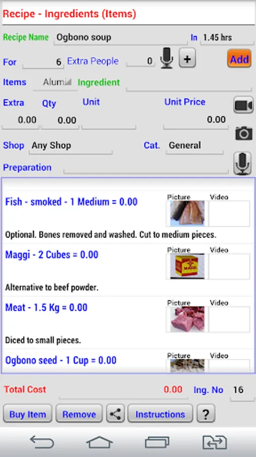 Enter each ingredient's cost to know recipe cost.