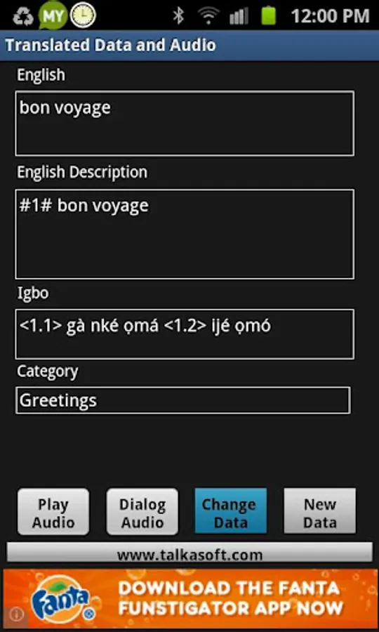 Dialog audio data helps to elaborate on the translated Igbo data and may be used to teach the user what to expect in reply to what they are saying to local speakers of the language. This professional version can also be used to backup and restore newly created data.