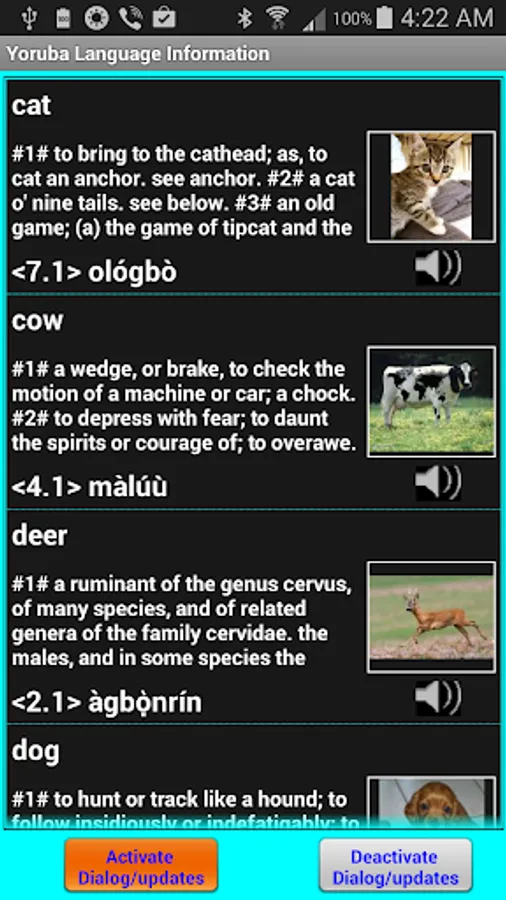 Dialog audio data helps to elaborate on the translated Yoruba data and may be used to teach the user what to expect in reply to what they are saying to local speakers of the language. This professional version can also be used to backup and restore newly created data.