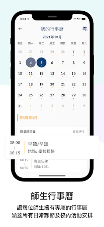School-based Compus allows each teacher and student to have an exclusive calendar, covering all daily lessons and school activities