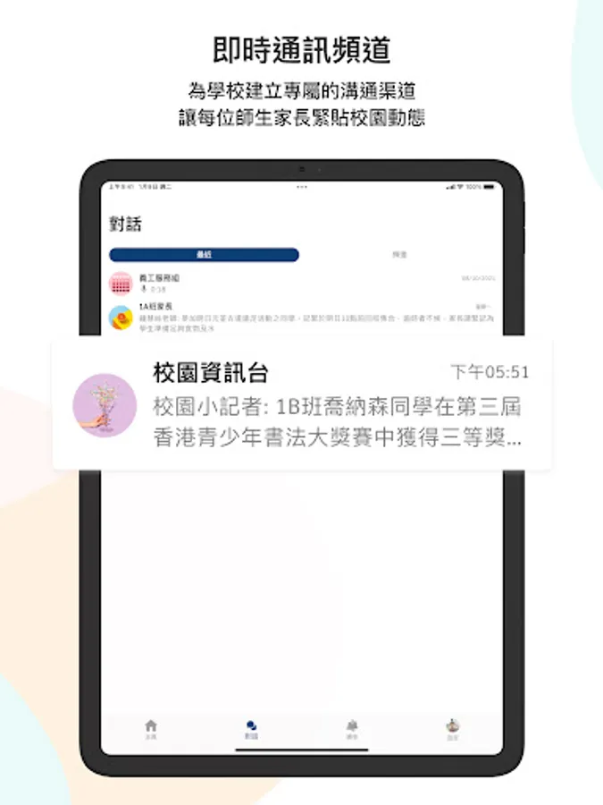 School-based communication Compus has established a campus-specific communication channel for the school to connect with each teacher and student parent, and keep abreast of the latest campus dynamics anytime, anywhere