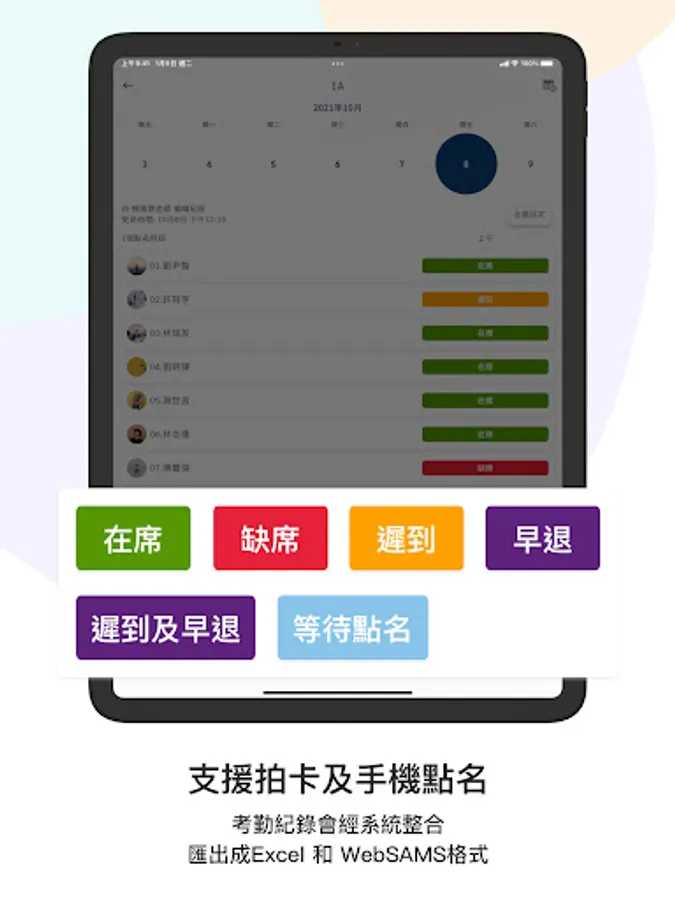 School-based Compus also solves the roll call for classes and activities, and exports all attendance records to Excel and WebSAMS format files, reducing processing and integration time