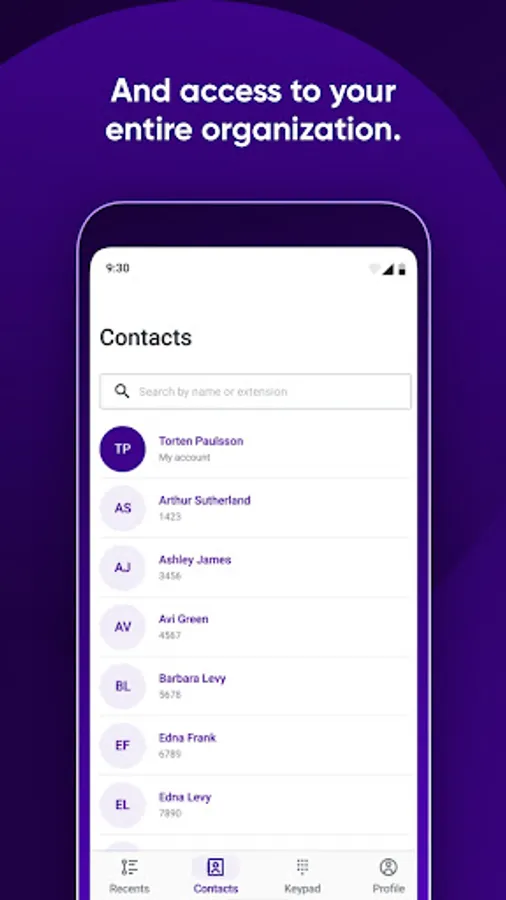 - Ability to present the name of the personal contacts when receiving and making calls inside the application