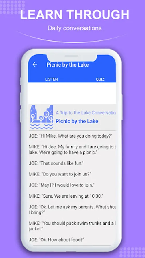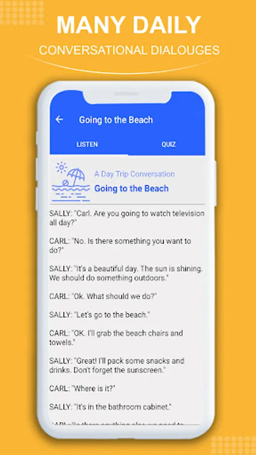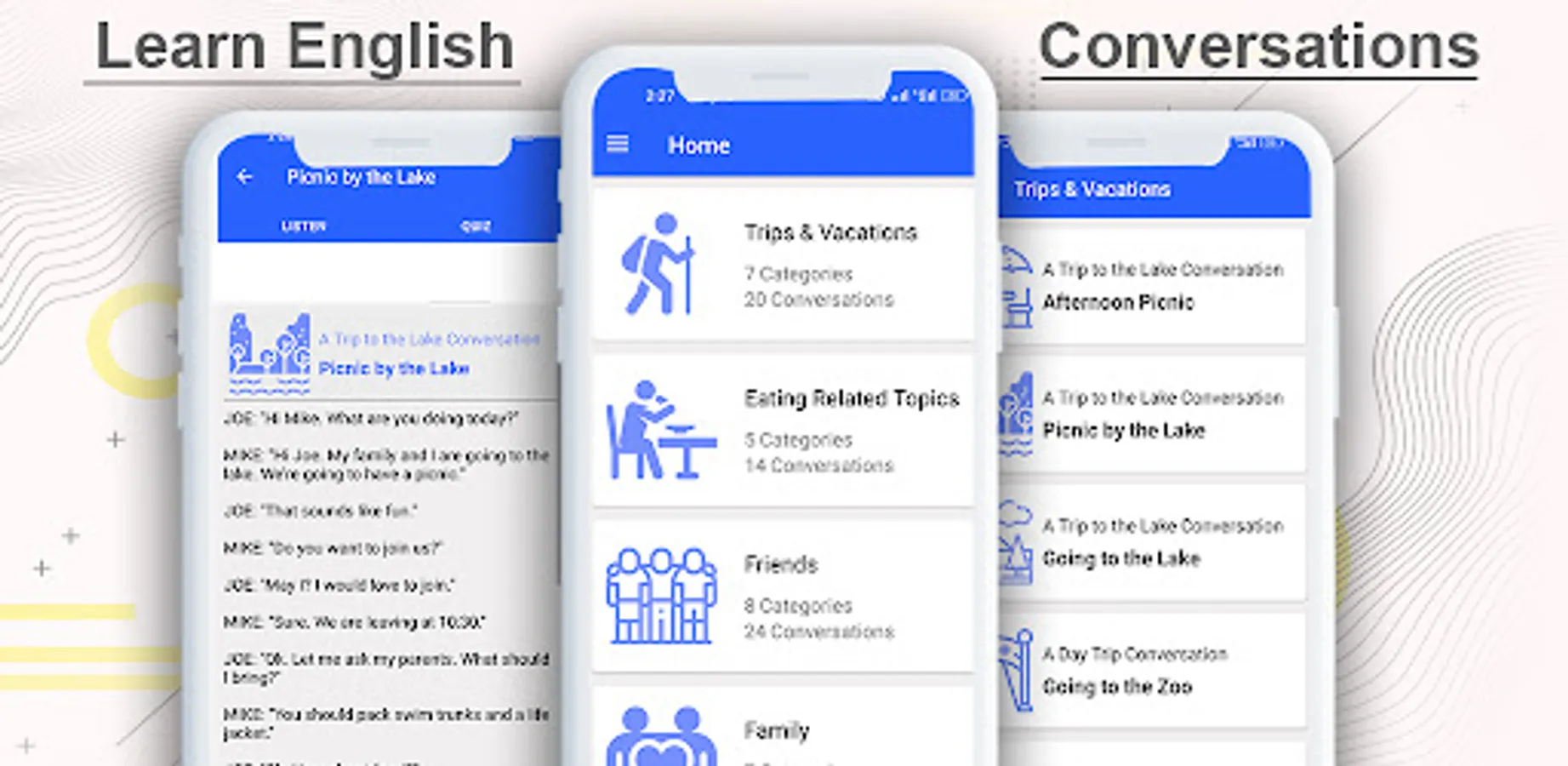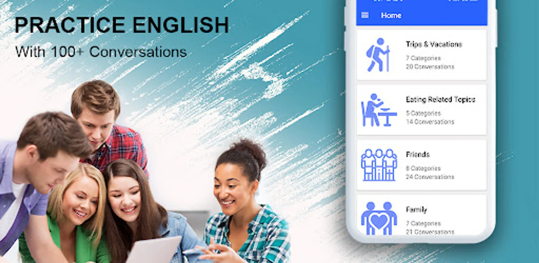 Learn English Speaking through English conversations practice and Quiz app. Get better in English.