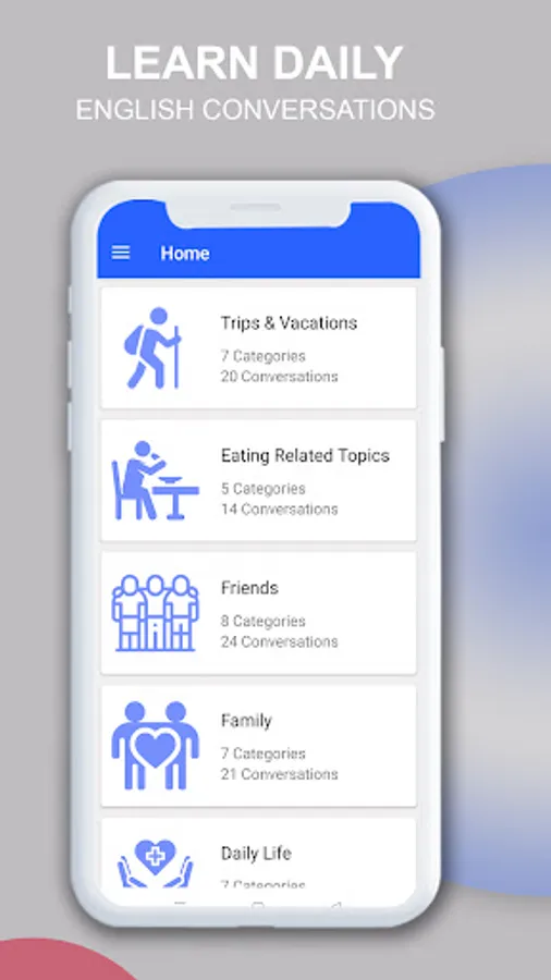 Easy English Conversation Practice app has more than 200 conversations. Our app covers verity of topics, with which one can practice in order to get better in English communication.