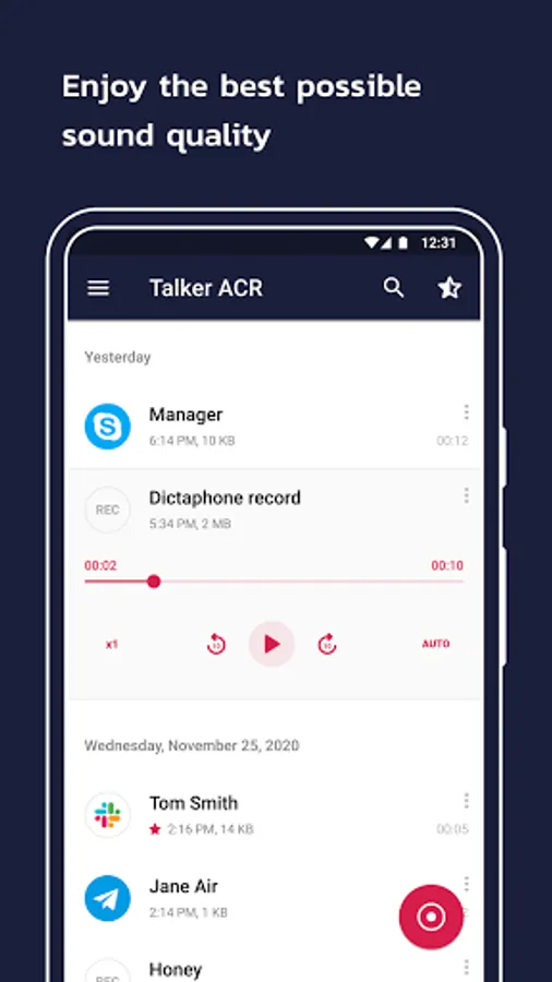 Slick and intuitive in its UI design, Talker call recorder is packed with cutting-edge functionality, which enables it to preserve the best sound quality, while also providing a wide array of extra features to app users.