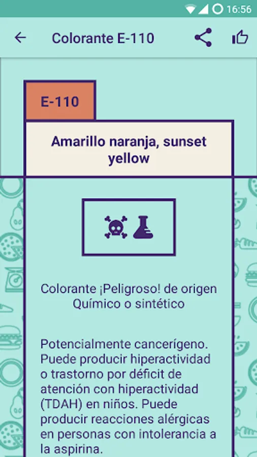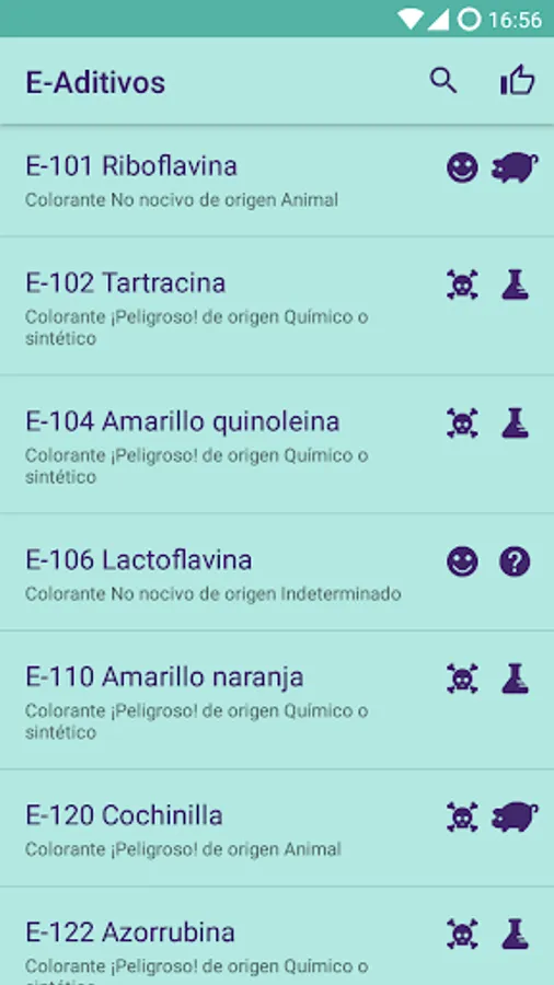Interactive list of the additives used in the food industry classified by their E number and indicators of both their origin and whether they are dangerous, harmful, etc.