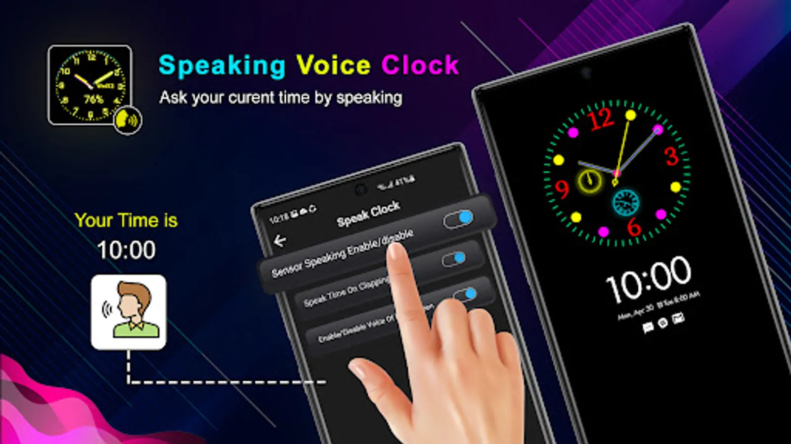The talking clock can also start up when you clap your hands! Enable the speak time option in the voice clock app, and impress your friends with just a few claps!