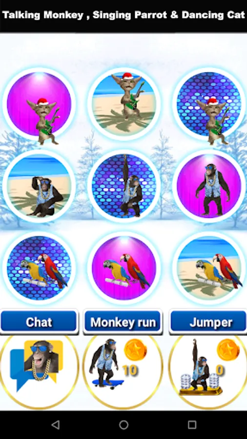Dancing Talking Monkey, Singing Parrot and Talking Cat is the only talking monkey, singing parrot and funny talking cat app that allows you to talk to multiple talking pets and play games with talking monkeys, talking parrot and dancing talking cat for entertainment and fun. It is a very funny and interesting app containing fun features and top games.