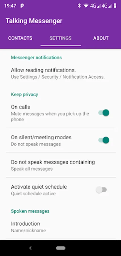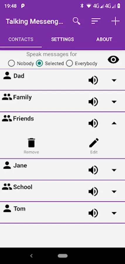 • Speak aloud none/all your fb messenger or messenger lite contacts.