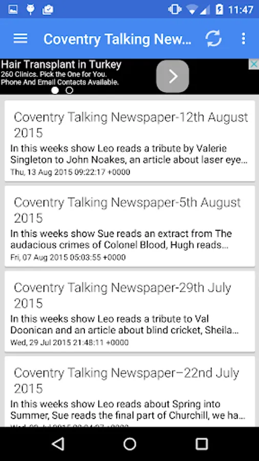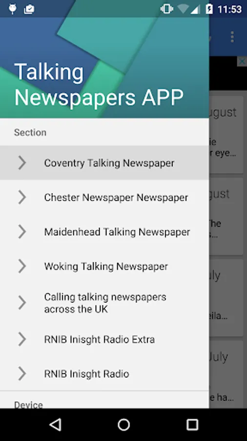 Talking Newspapers & Magazines provides audio versions of national newspapers and magazines for the blind and partially sighted. This app links to some of the UK providers currently publishing audio online for the visually impaired. The app links to the audio feeds for Talking Newspaper Coventry, Chester, Maidenhead and Woking. Links are also provided for the radio streaming services provided by the RNIB (Royal national Institute for the blind). Please be aware that data charges will apply as the app links to a number of data feeds and audio published online.