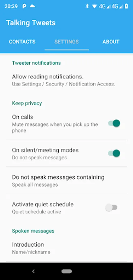 • Settings to speak Twitter messages with emoticons,stickers or emojis.