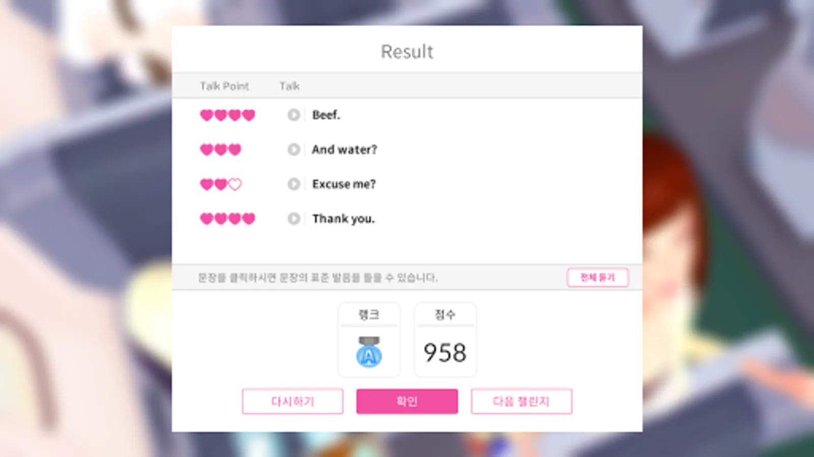 Recognition analyzes the user's pronunciation, not something that tedious repetition to memorize words and sentences makes it more fun to learn English with the pronunciation improvement.