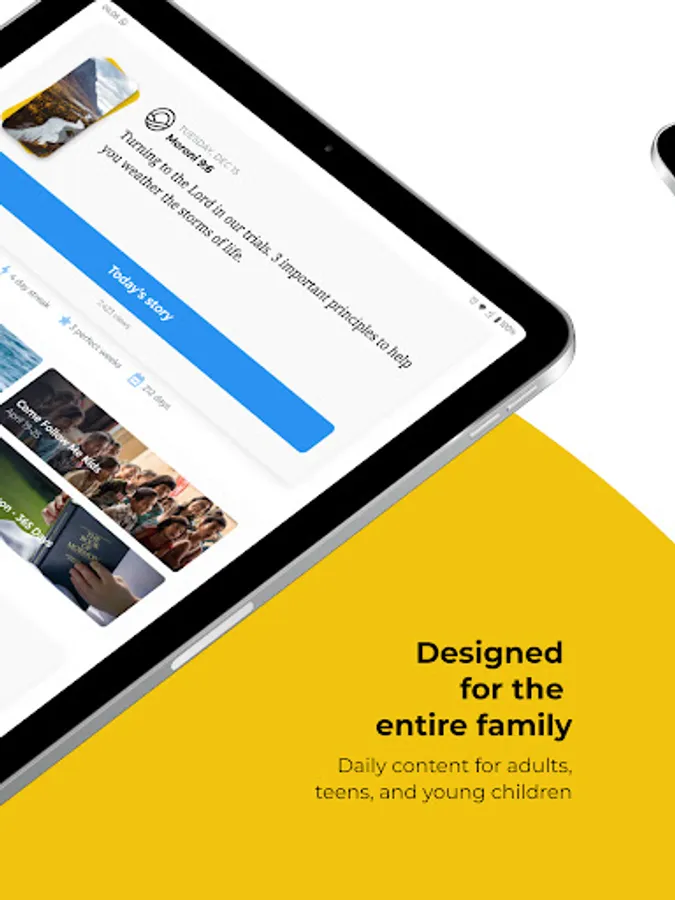 The WB app helps individuals and families overcome these challenges. Our mission is to build a modern, world-class scripture-study platform. Our app provides: