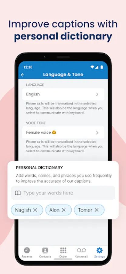■ Personal Dictionary: Nagish allows you to add custom words, phrases, or acronyms that you commonly use or may be unique to your conversations. This feature ensures that Nagish accurately transcribes and recognizes the language and terminology that matters most to you.