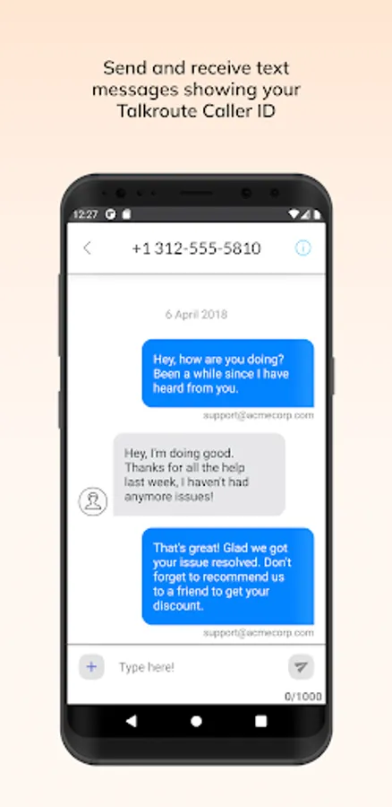 Now you can look and sound professional anywhere, while keeping your cell phone number private, with the Talkroute Android app.