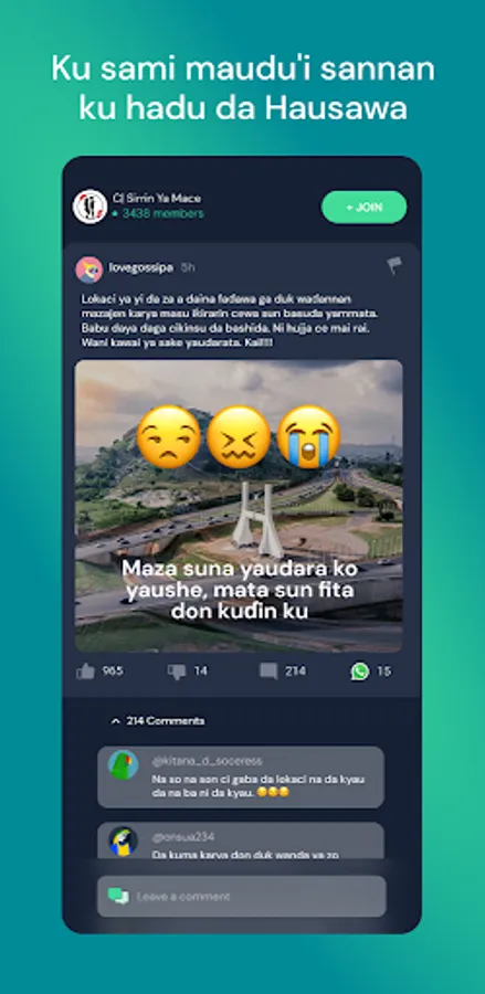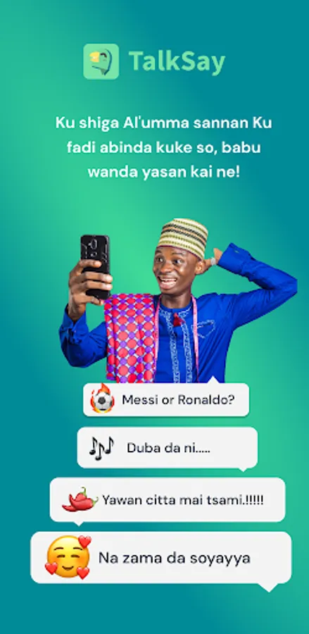 Start using TalkSay today -- the only social app that let's you share how you truly feel in the Hausa community.