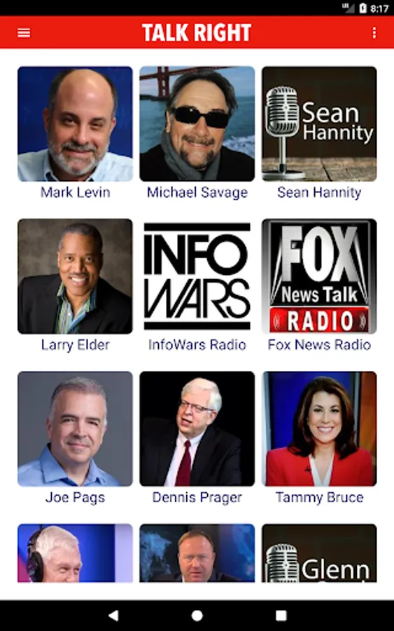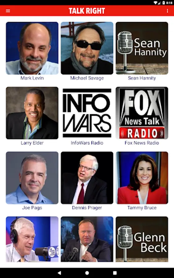 Welcome to the “Talk Right” app for Android! Offering our users instant access to the best Live streaming Conservative Talk Radio Shows, Stations and Podcasts 24/7.