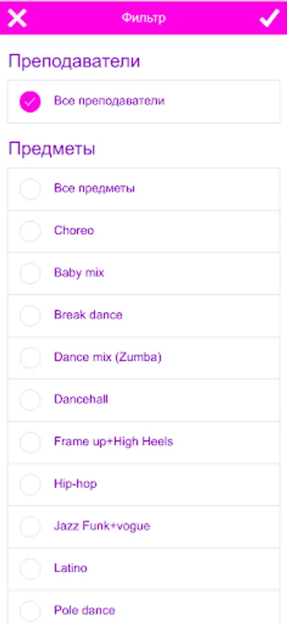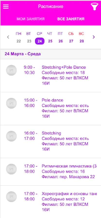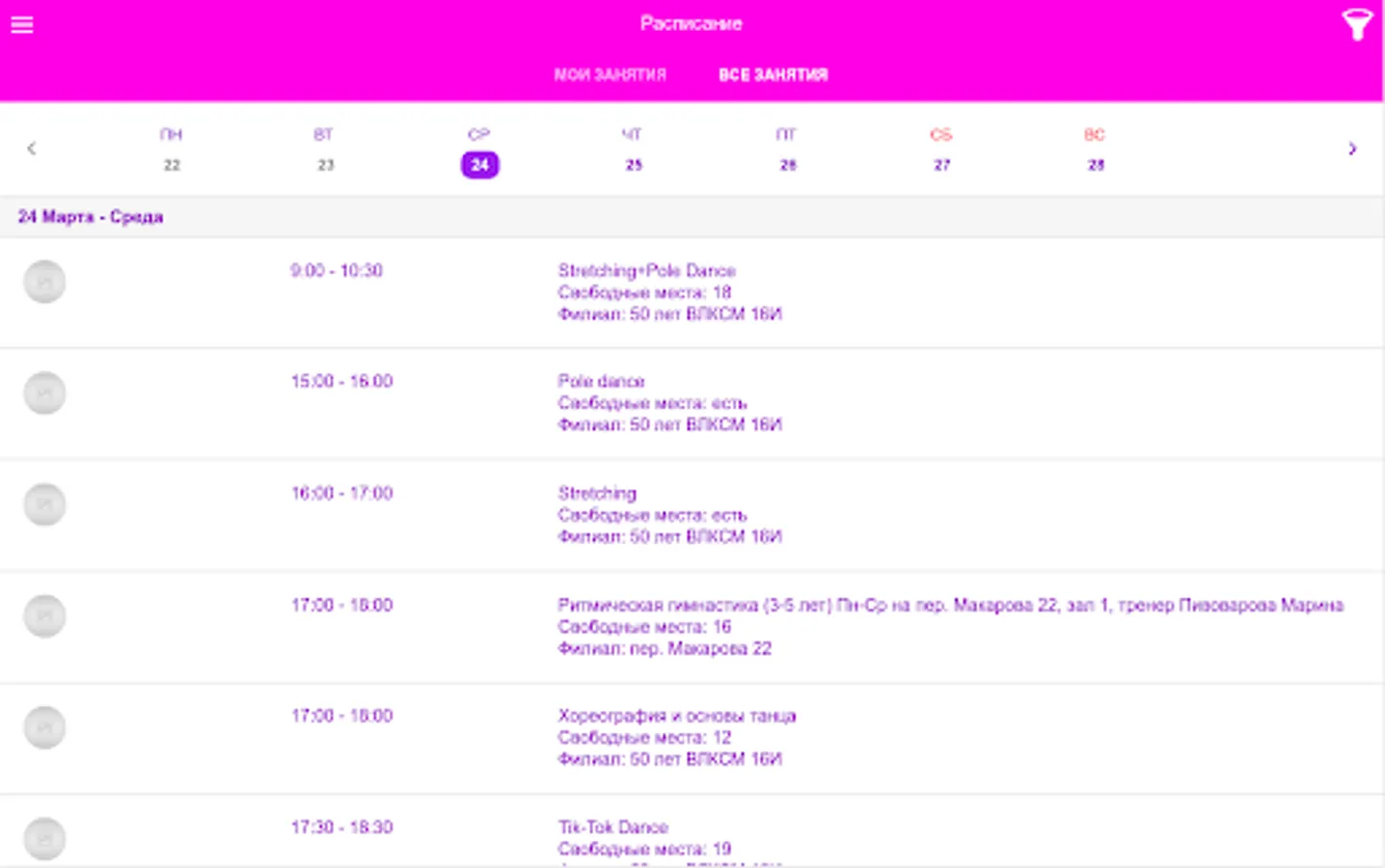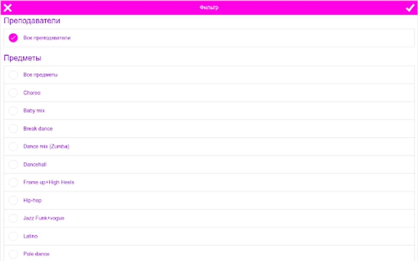 The application will help you sign up for classes, pay for a subscription, view your visit history, receive up-to-date news about schedule changes, discounts and promotions