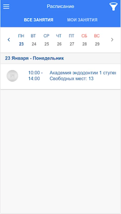 Appendix "North Carolina Education" allows you to monitor the schedule of the seminars held in the training center of "North Carolina"