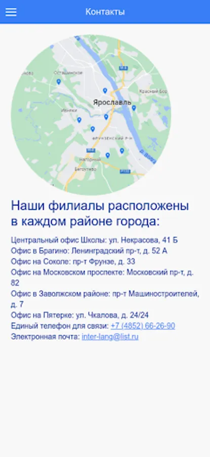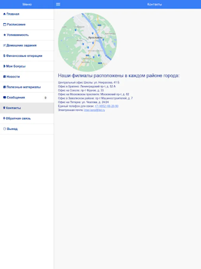 The application contains information about the schedule of your classes at "Inter-Lang" Yaroslavl, test results, points earned, payments and will allow you to keep abreast of the latest school news.
