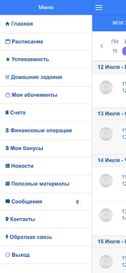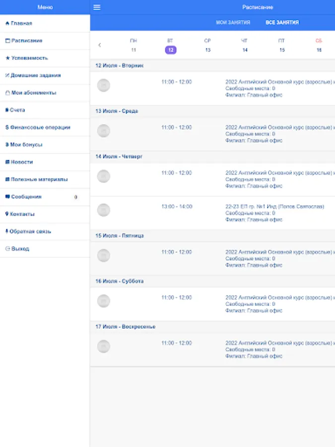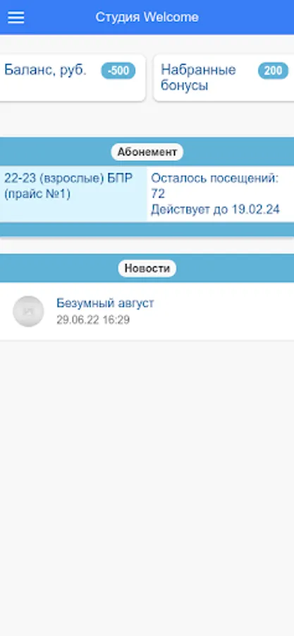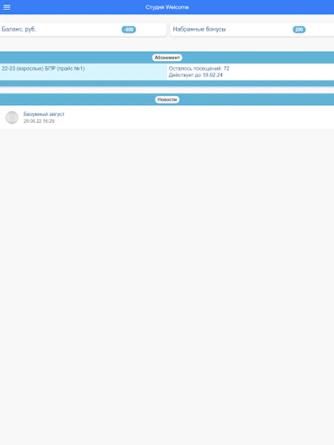 The application allows you to see the full schedule in the studio, as well as your lessons. You can check the balance of classes in active subscriptions, payment transactions for classes, homework, class results, see a mark on attendance and completion of homework. There is also information about the current balance, news, contacts, useful educational materials and much more.