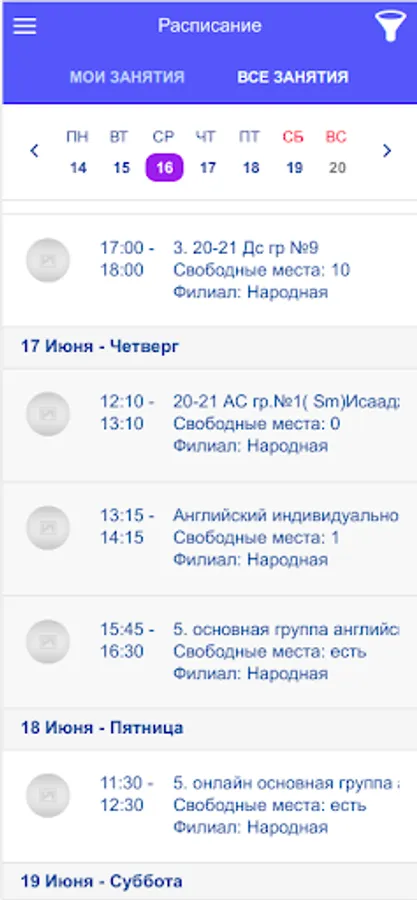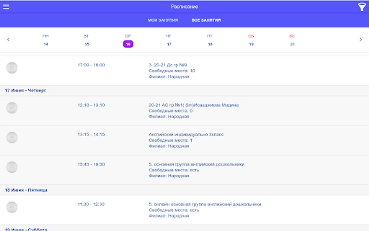 The application allows you to see the full schedule in the Studio, or just your lessons. You can check the balance of classes in active subscriptions, transactions for paying for classes, homework, the results of classes, see the mark of attendance and completion of d / z. There is also information about the current balance, news, contacts, useful training materials and much more.
