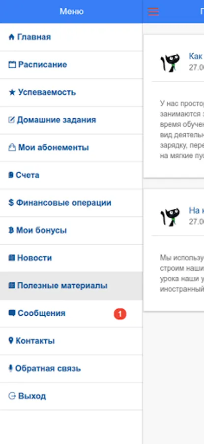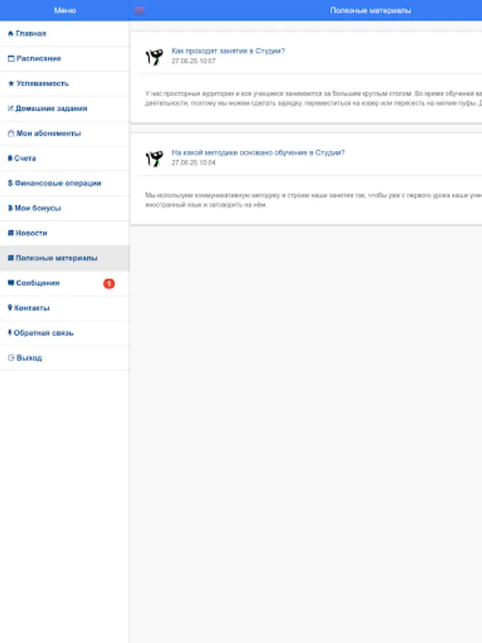 Using this application, you can always read the latest news, check your balance, view the class schedule, homework, and the remaining classes in your subscriptions.
