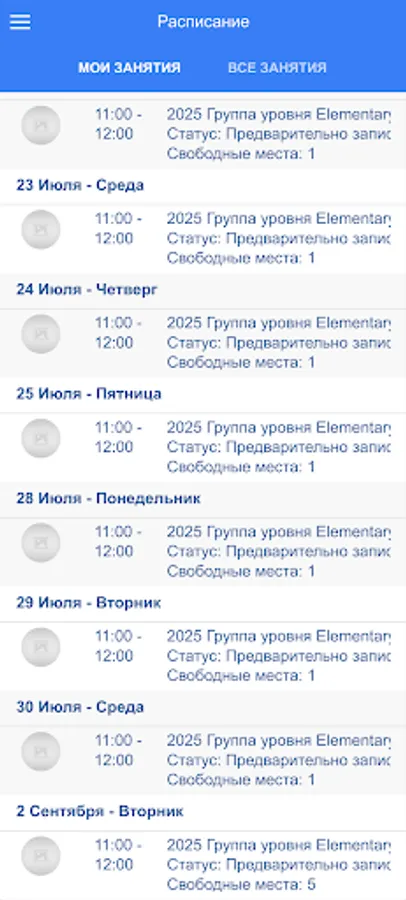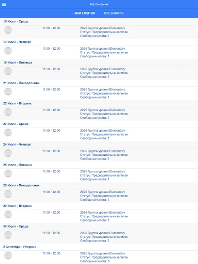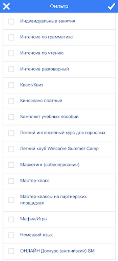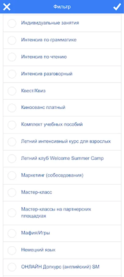 Also through the application you can see the full schedule in the Welcome Voronezh language studio.