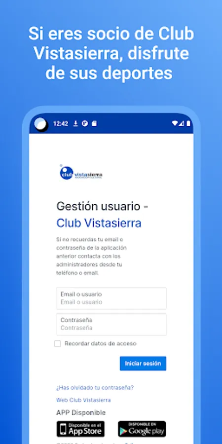 Vistasierra Club application. App in which members can make reservations in sports spaces such as paddle tennis, tennis, etc.