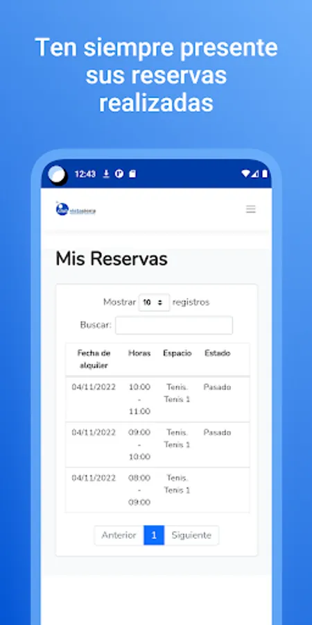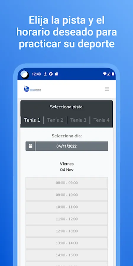 With this app, the member will be able to select the day and time in which they want to reserve the sports space. In addition, the user will have a list with all their reservations made.