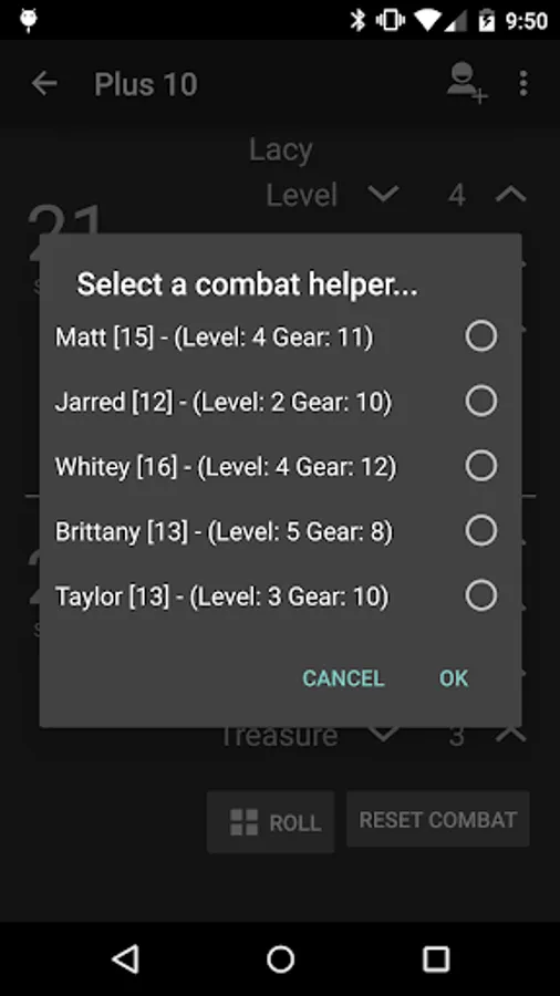 -Combat mode to track player modifiers, up to 2 monsters, monster modifier, and treasure.