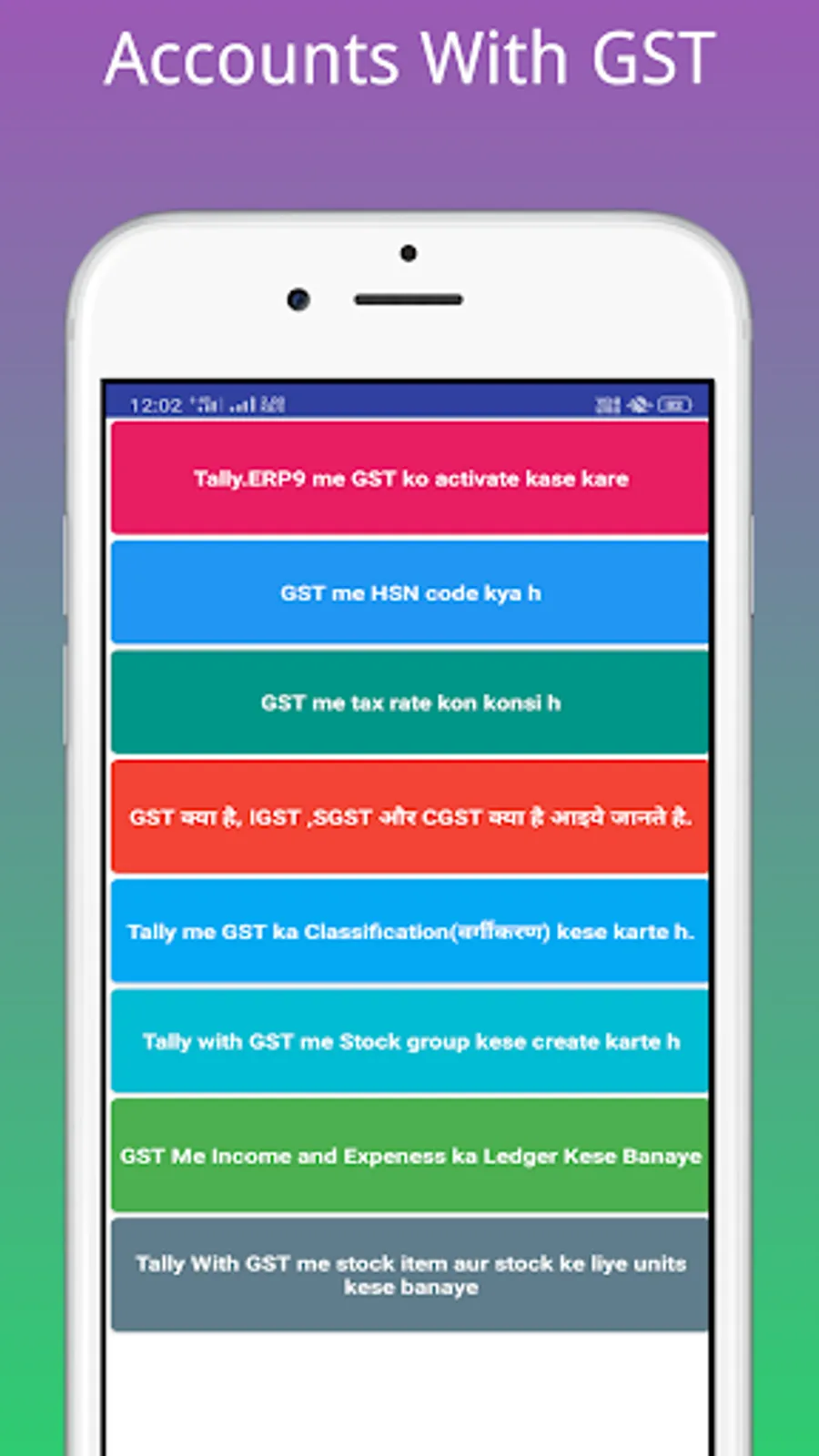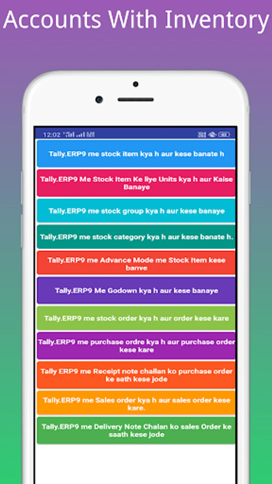 Tally App For Android Provide You Some Features Like You Have learn Many Categories Tally With GST In Hindi and TDS And Inventory Features User Learn In This App