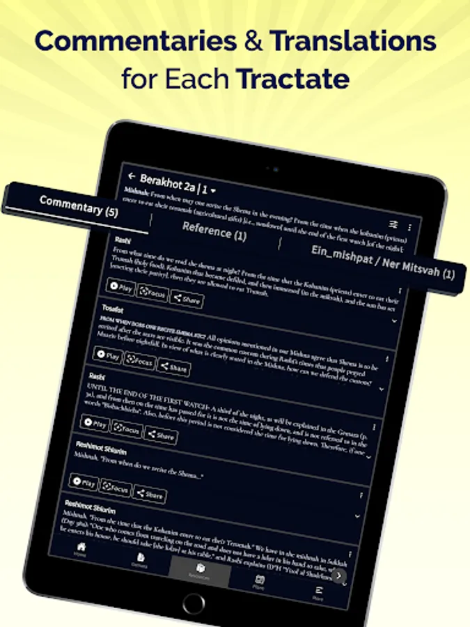 The Talmud Bavli texts, scripts and Jewish commentaries are provided in the Hebrew and English language. (some Sederem not yet translated to English)