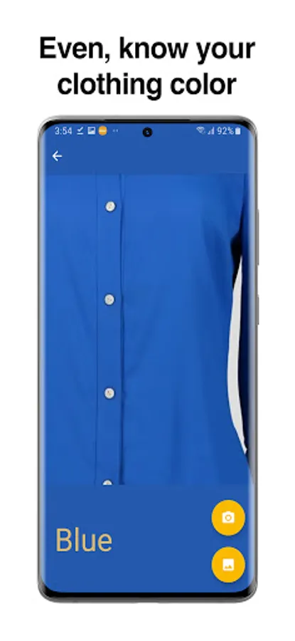 - Colors: Phone will identify color by taking a photo, or from your camera roll images.