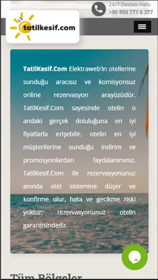 TatilKesif is an intermediary and commission-free online reservation interface offered by Elektraweb to its hotels. Thanks to TatilKesif, you can access the actual occupancy of the hotel at the moment at the best prices, and benefit from the discounts and promotions that the hotel offers to its best customers. With TatilKesif, your reservation will instantly enter the hotel system and be confirmed, there is no risk of error and delay; Your reservation is guaranteed by the hotel.