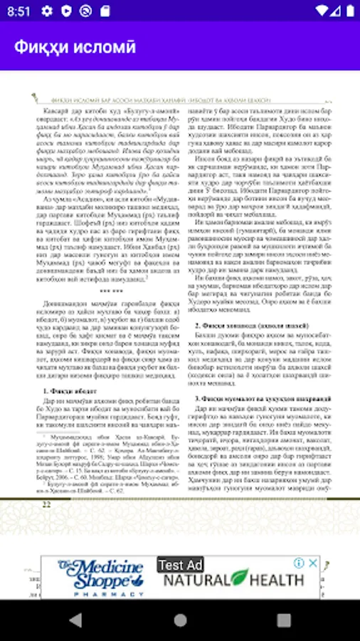 “PHIҚҲI ISLOMӢ BAR ASOSI MAZҲABI ҲANAFӢ (ibodot wa avololi shahs”), asari Abdusharif Boқizoda oid ba paҳluҳoi gunoguni talimoti fiiva maorifi islomӣ. Gift of kitob akomi to Ibodatu ҳolatҳoi shahsӣ wa honavodagув movofiқi masҳabi ҳanafӣ sharҳu tavzeҳ yoftaand.