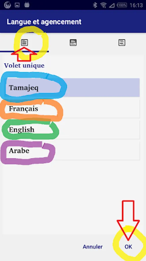- "two panes" to display the Tamajaq at the top and the French / English or Arabic version at the bottom