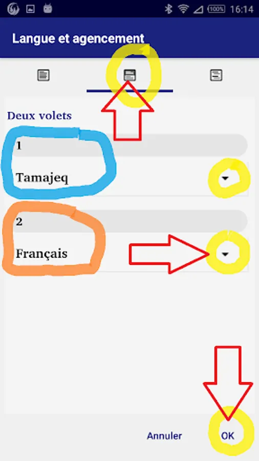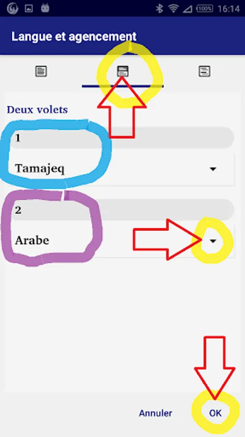 - "two panes" to display the Tamajaq at the top and the French / Arabic or English version at the bottom