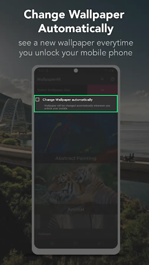 We know you have more interesting things to do than looking through and endless list of wallpapers. Avoid the hassle and click on AUTO WALLPAPER CHANGE option. And see a new wallpaper everytime you unlock your mobile phone.
