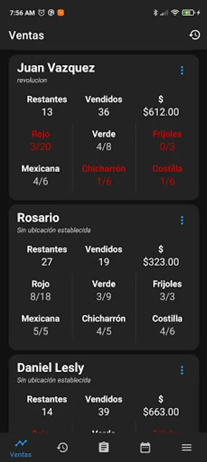 With TamalHouse you can keep a strict control of the daily sales of all your points of sale and your workers, you can create a new working day each day and assign different products to each seller, once the day has started you can know in real time the remaining status of products in each of your locations and to be able to make decisions quickly and easily, in the same way receive alerts when a seller is running out of products to assign more.