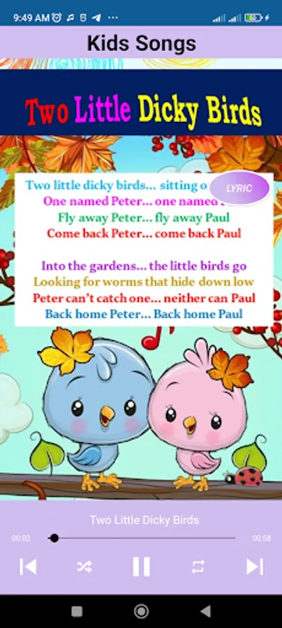 The offline application contains a collection of children's songs which are applications for learning English