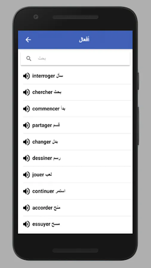 The application in Arabic and offers Arabic translation of the most important French words used video and audio without Internet